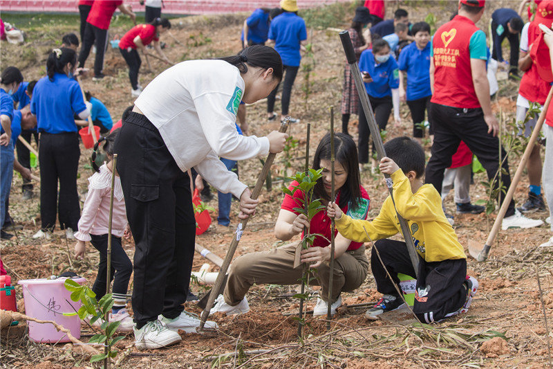 本次公益植树活动的参与者不仅有志愿者,还有三两好友、家庭组合,更有企业和社会团体踊跃组团参加。活动现场热闹非凡,活动流程井然有序、有条不紊。